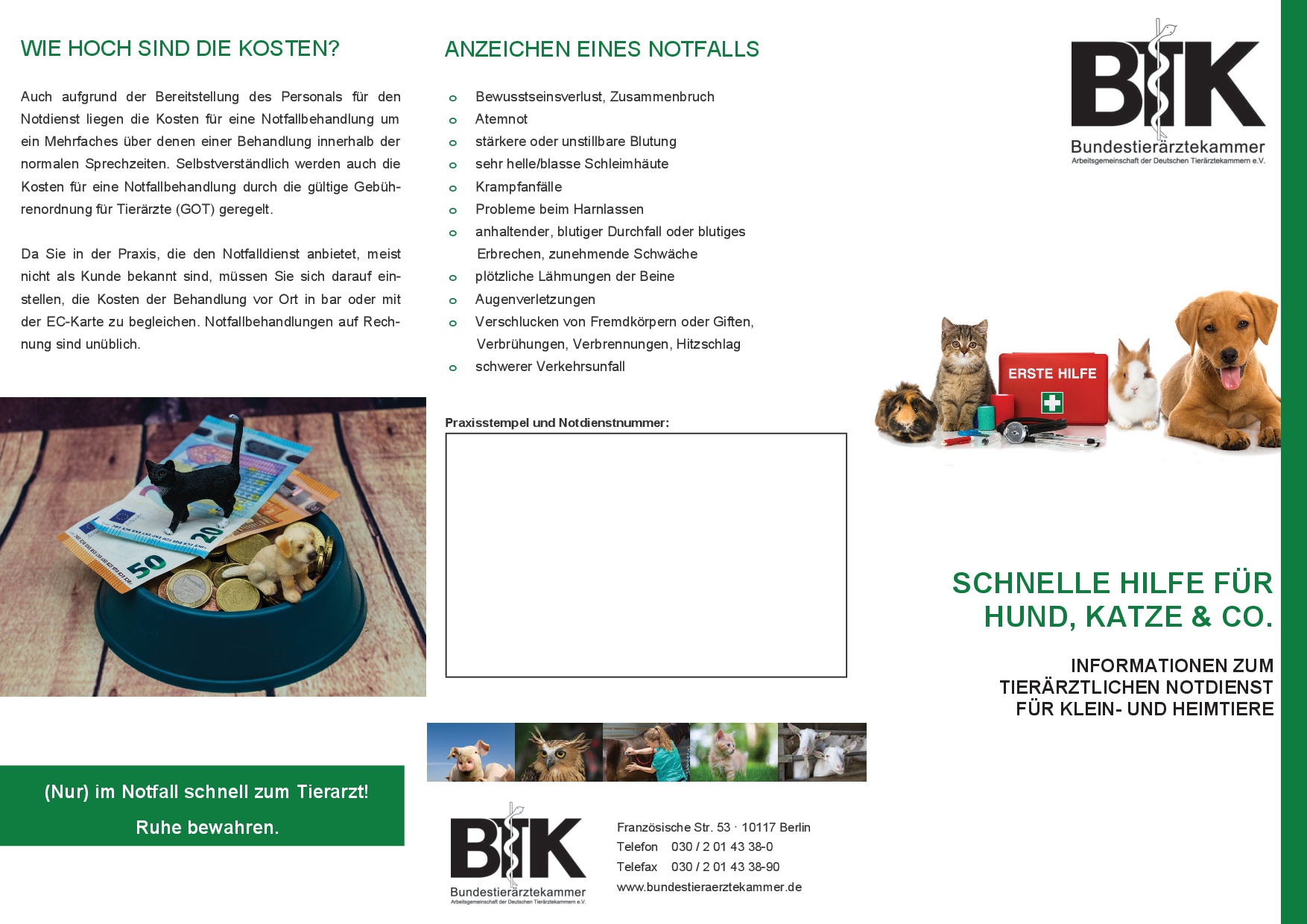Entsprechend der Tierärztlichen Gebührenordnung sind wir verpflichtet, Behandlungen außerhalb der regulären Sprechzeiten, das heißt in der Woche ab 19 Uhr sowie am Wochenende, als Notfall abzurechnen. Sollte es sich nicht um einen echten Notfall handeln, werden wir versuchen, einen möglichst zeitnahen Termin innerhalb unserer Sprechzeiten zu finden. Bitte haben Sie Verständnis dafür, dass die Wartezeiten bei Neukunden unserer Praxis länger sind.